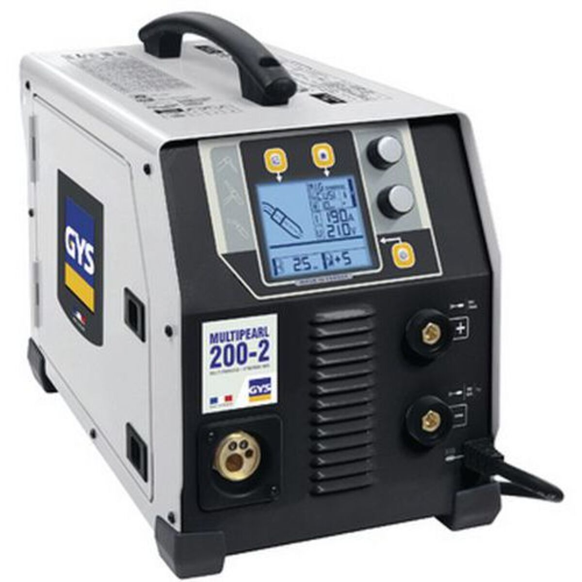 Poste de soudage multiprocédés Multipearl. Modèle: Poste de soudage Multipearl 200.2. Tension à vide: 85 V. Intensité de soudage mini: 20 A. Intensité de soudage maxi: 200 A. Facteur de marche: 120 A à 60 % (en 230 V). Électrode Ø mini: 1.6 mm. Électrode Ø maxi: 5 mm. Poids: 19.5 kg. Alimentation: Monophasée. Hauteur: 47 cm. Tension: 230 V. Largeur: 51 cm. Longueur: 30 cm. Protection IP: IP 21